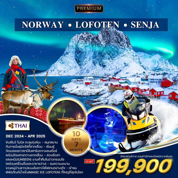 | ทรอมโซ – โมน – ขับรถสโนว์โมบิลชมทุ่งหิมะ – ฟาร์มสุนัขฮัสกี้ (นั่งเลื่อนสุนัขฮัสกี้) – เกาะเซนญ่า – ชมแสงเหนือ |