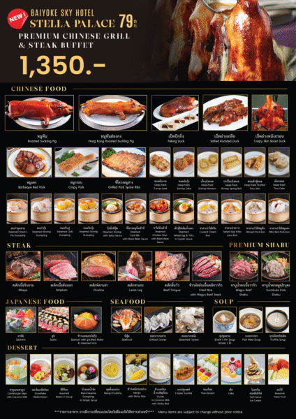บุฟเฟต์สุดพรีเมี่ยม เฉพาะที่ภัตตาคารจีนสเตลล่า พาเลซ (ชั้น 79) ในรูปแบบคาราวานบุฟเฟต์ที่จะเข็นรถบริการทุกท่านถึงที่โต๊ะ