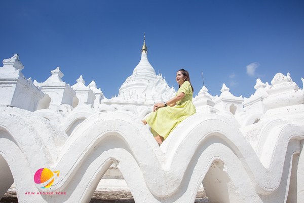 ถ่ายรูปกับเจดีย์สีขาว เป็นเจดีย์ที่สร้างขึ้นเพื่อแสดงความรักของ พระเจ้าบากะยีดอว์ ที่พระองค์มีต่อ พระมหาเทวีชิวพินเม