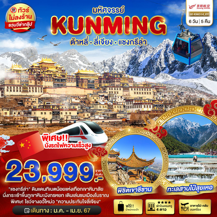 มหัศจรรย์ คุนหมิง ต้าหลี่ ลี่เจียง แชงกรีล่า 6วัน 5คืน บินKY