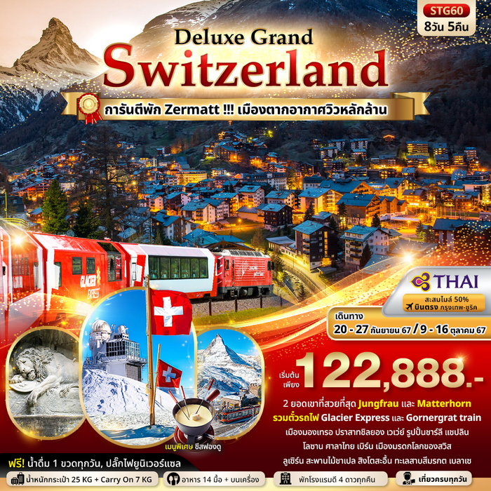Deluxe Grand Switzerland Jungfrau Zermatt Matterhorn Glacier Express & Gornergrat 8วัน 5คืน