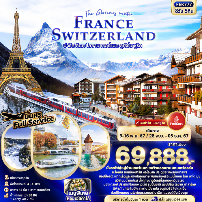 ทัวร์ยุโรป The Glorious winter FRANCE SWITZERLAND 8วัน 5คืน