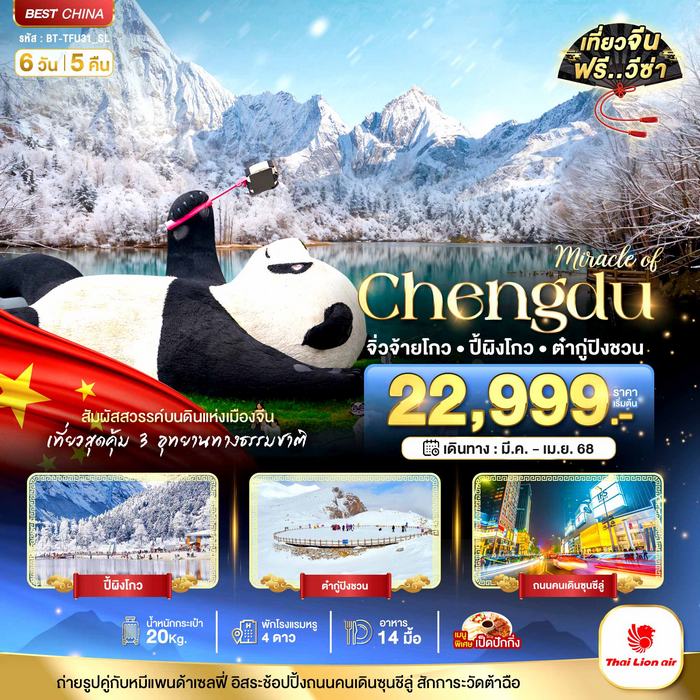 ทัวร์เฉิงตู จิ่วจ้ายโกว ปี้ผิงโกว ต๋ากูปิงชวน 6 วัน 5 คืน