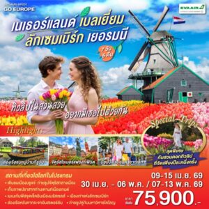 ทัวร์เนเธอร์แลนด์ เบลเยียม ลักเซมเบิร์ก เยอรมนี ทิวลิปในสวนสวย อยากมีเธอไปด้วยกัน 7 วัน 5 คืน